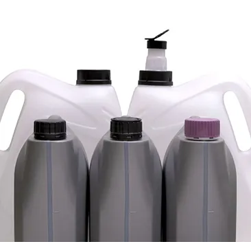 Schroefsluitingen voor DIN38. Met PE of inductieseal. Ook spoutversie voor nauwkeurige dosering. Flexspout DIN51 met richtfunctie voor schoon en snel uitschenken.