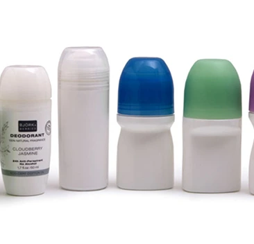 Standaard Roll-on flacons. Voor deodorant of insectenmiddel. Gemaakt van kunststof, met bedrukking in 1 kleur.